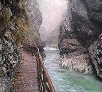 Blejski Vintgar se razteza skozi 1.6 km dolgo sotesko, po kateri teče reka Radovna.