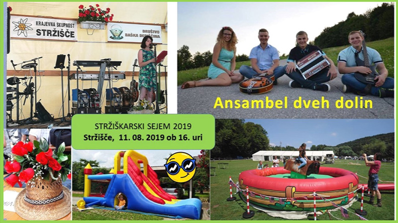 V nedeljo, 11. avgusta 2019 ob 16.00 uri, bo v Stržiščah v Baški grapi tradicionalna prireditev Stržiškarski sejem. Pričela se bo s kulturnim programom in nadaljevala z živo glasbo. Spremljevalni program bo obogatil srečelov.