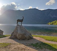 Ponosno se bohoti na večji skali ob Bohinjskem jezeru in nakazuje pravljičnost.